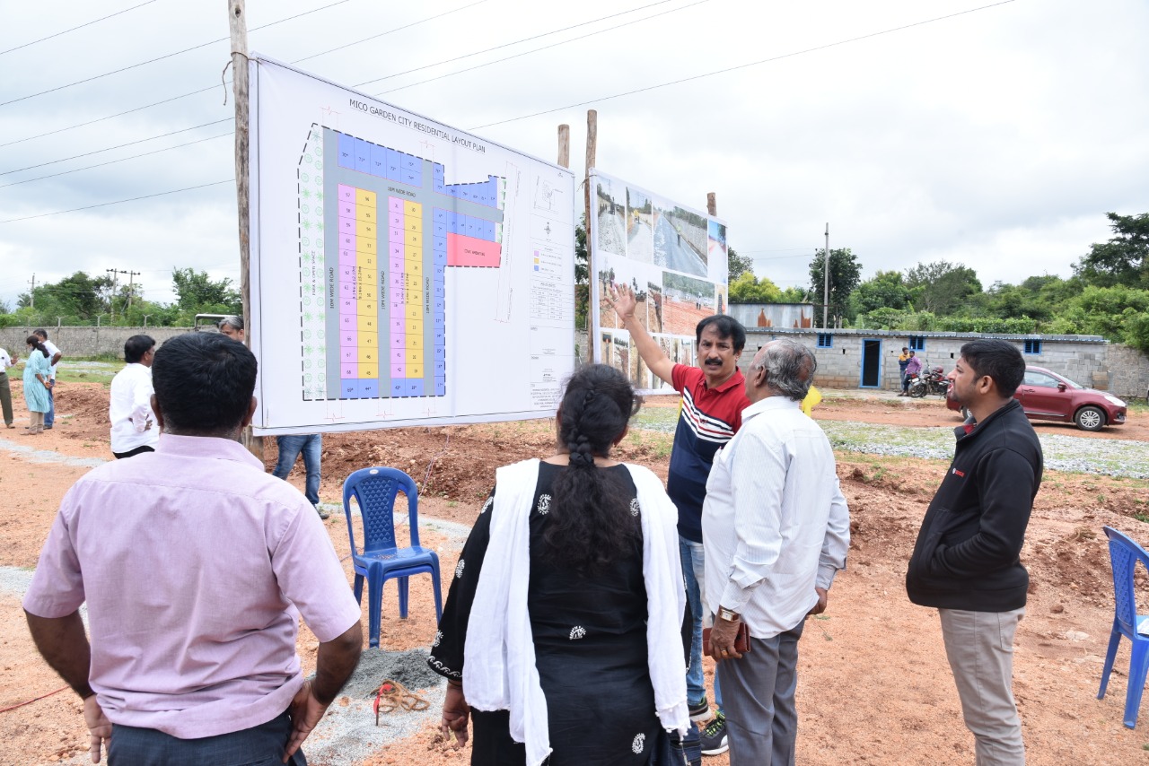 Dear Member, MICO Garden City development work has been started following are the photos of leveling Work and Road work from Medanahalli to Eagleton Compound extended towards north up to our boundary. Marking work progress will be communicated soon. Regards,Mico Garden city080-22210078