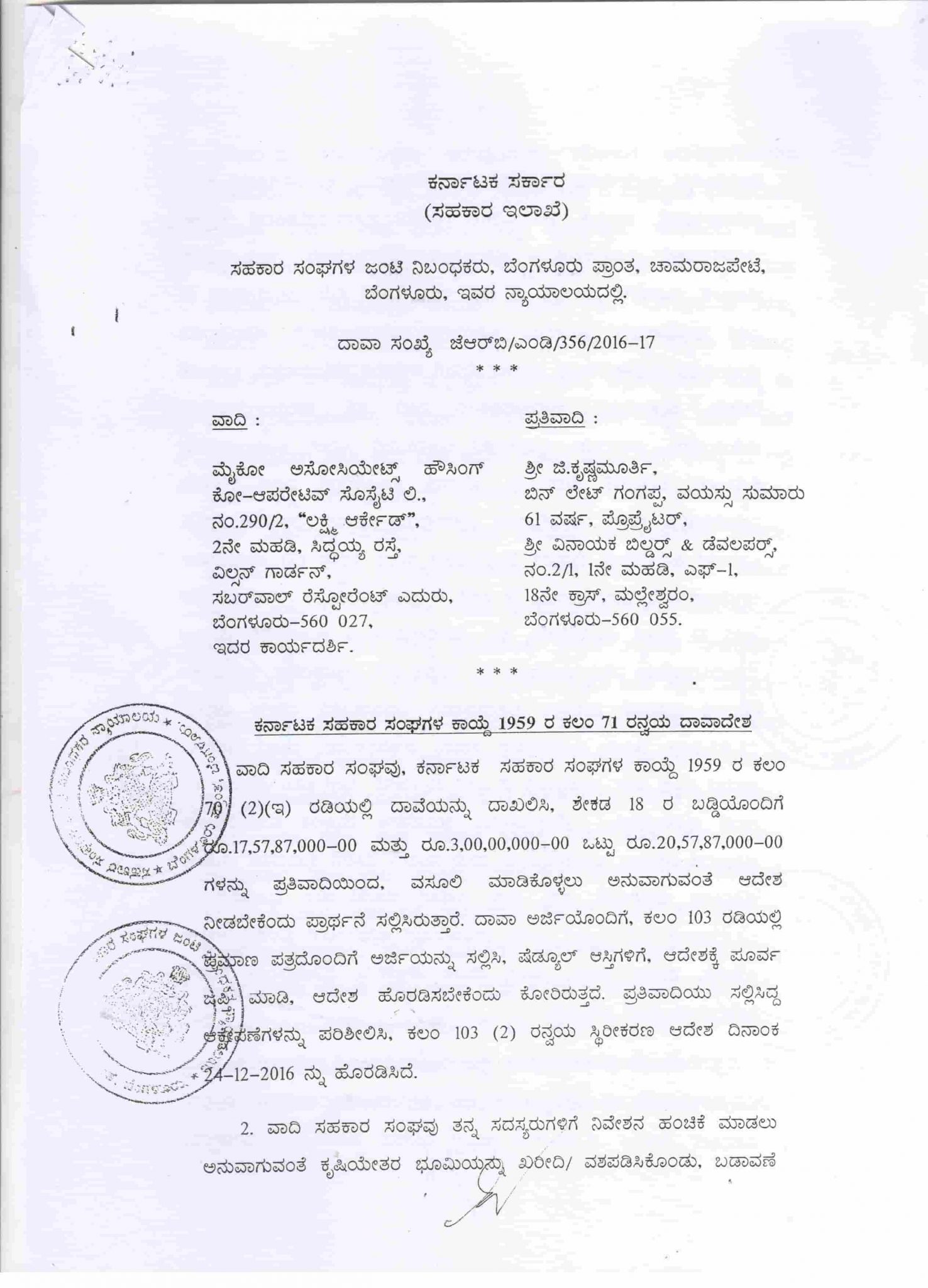 Property Attachment of G Krishnamurthy(Ex-Developer)